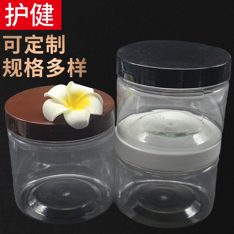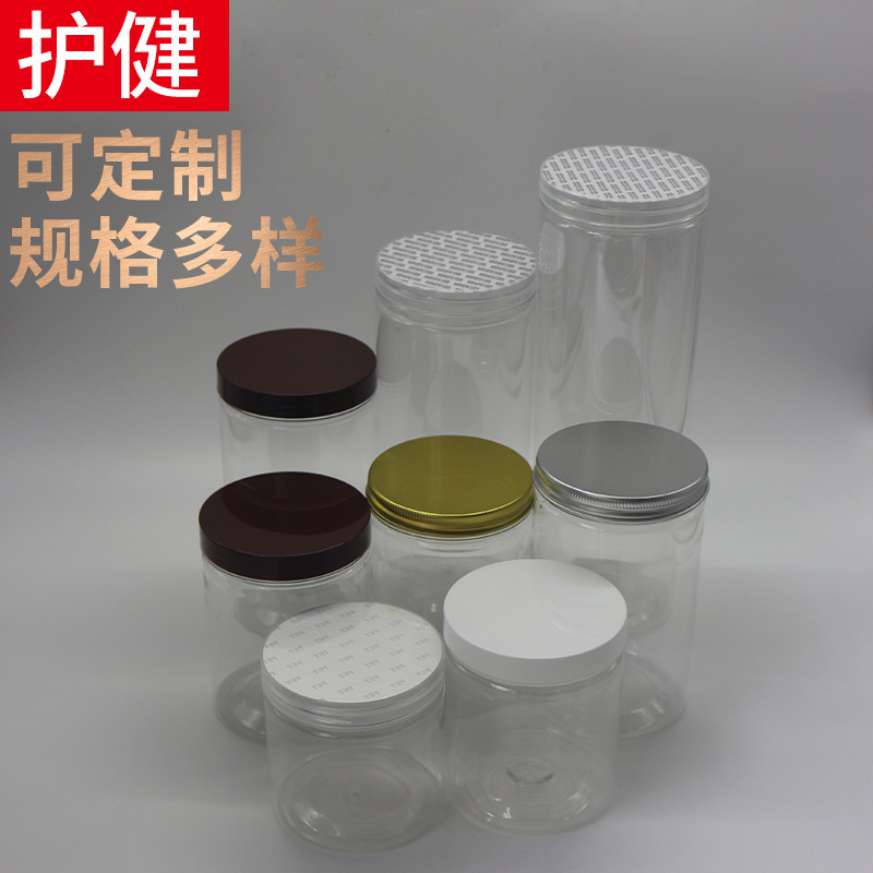 金蓋銀蓋ペットボトル密封缶増粘ペットプラスチック缶包装バレル丸型透明広口保存缶