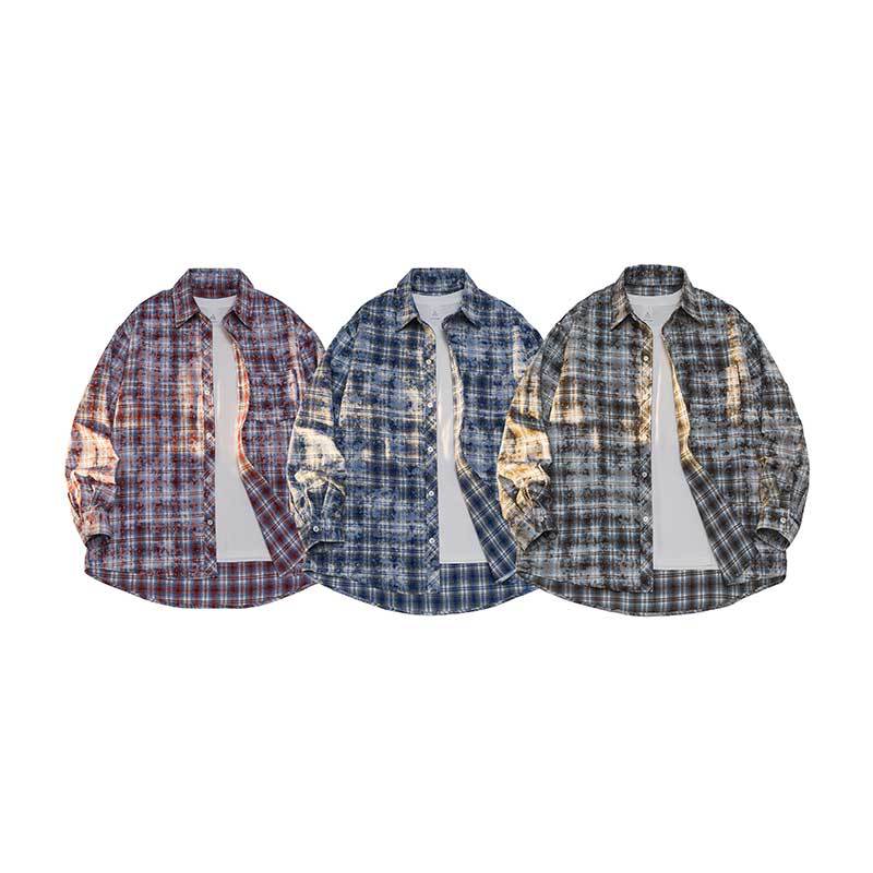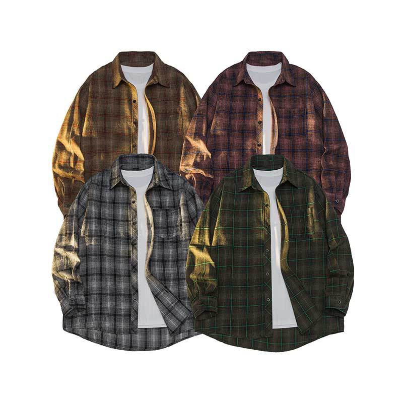 アメリカのレトロな格子春秋のシャツの男性の新型の怠惰な風のゆったりしている底のシャツの高級感の長袖のシャツのコート