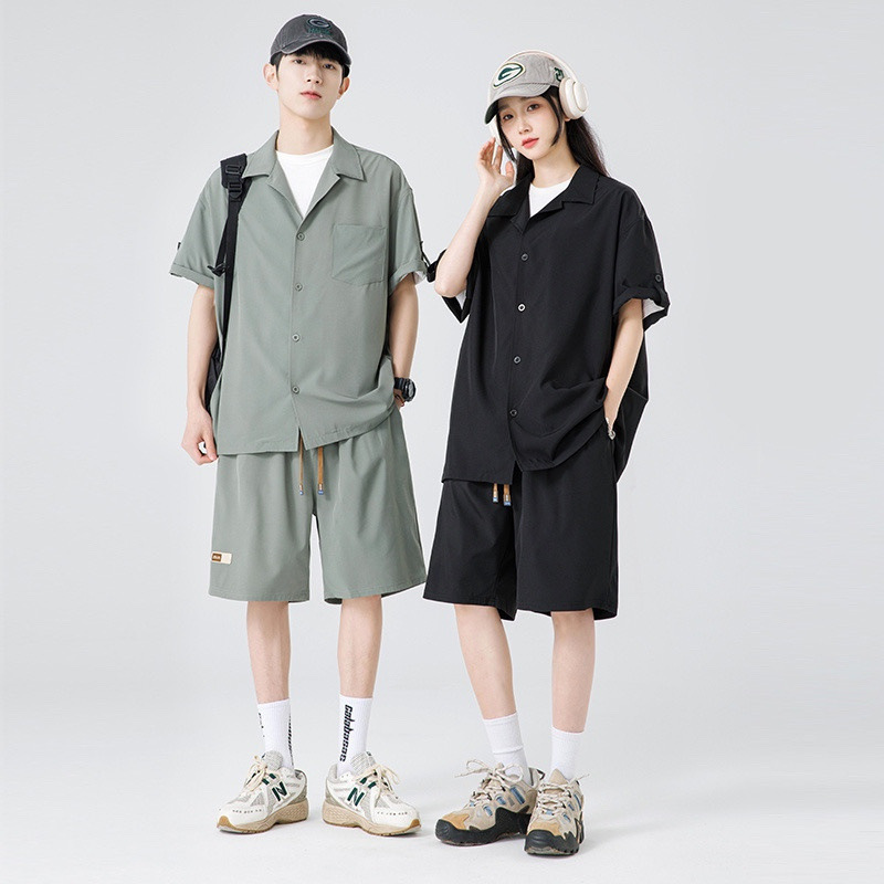 【240724001】夏の超薄垂れ感氷糸カジュアルシャツショートパンツスーツ男性韓国版トレンド