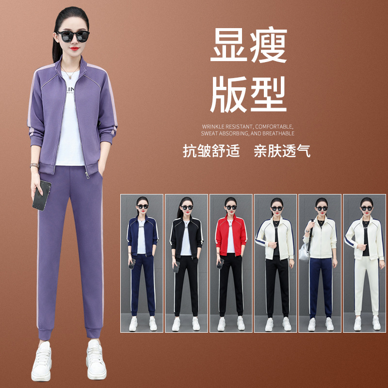 ファッション長袖長ズボンセットレディース秋冬新作通気スリムランニングカジュアルスポーツ三点セット半袖付き