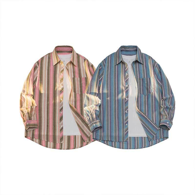 春秋ストライプシャツ韓国版カジュアル青少年長袖シャツ香港風ins百合襟男女コート