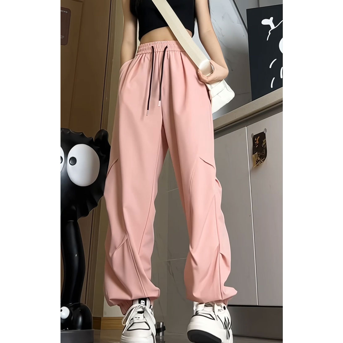 工装ズボンの女性服のズボンの子供と春の新型のハイウエストのカジュアルなパラシュートのズボンはやせていてゆったりしています。