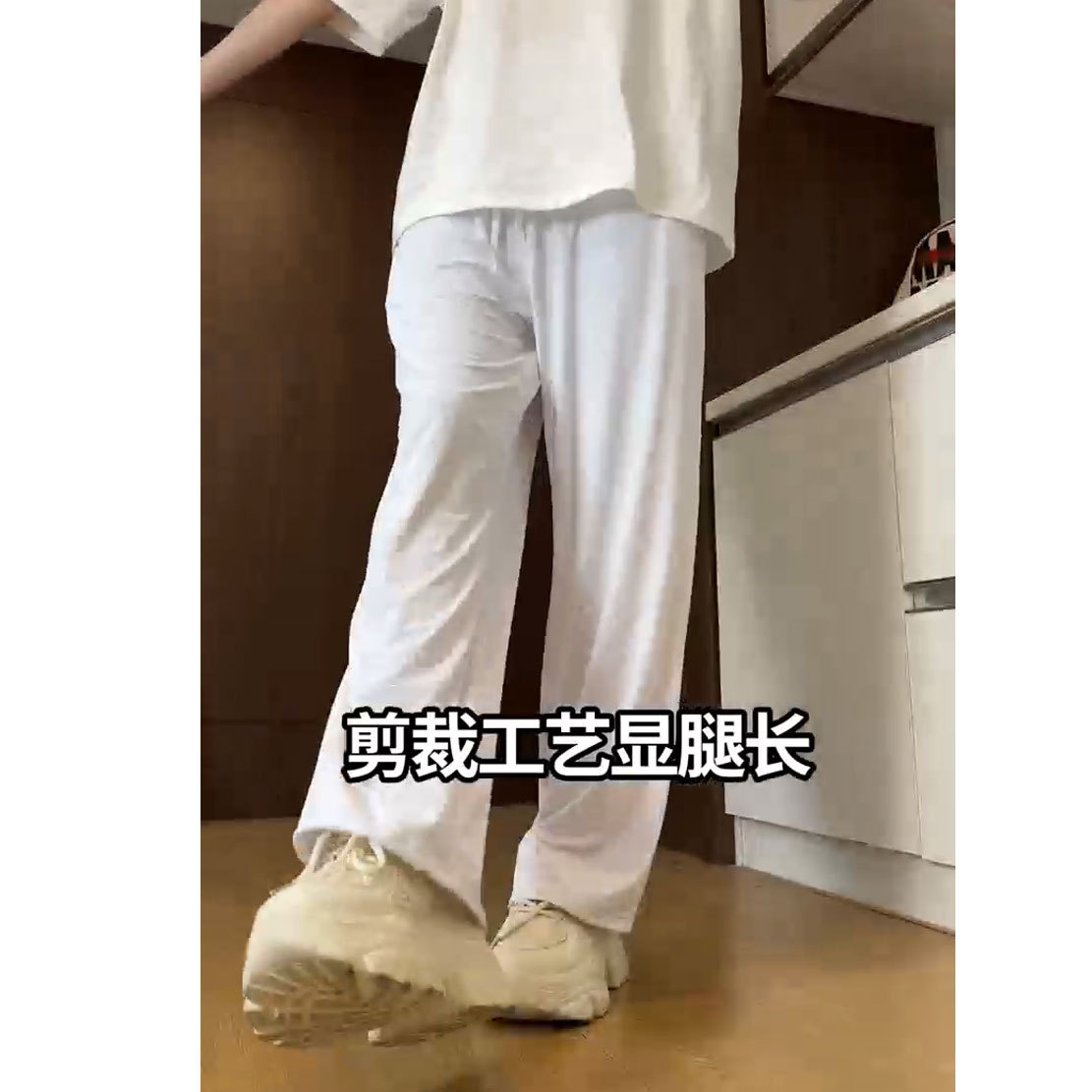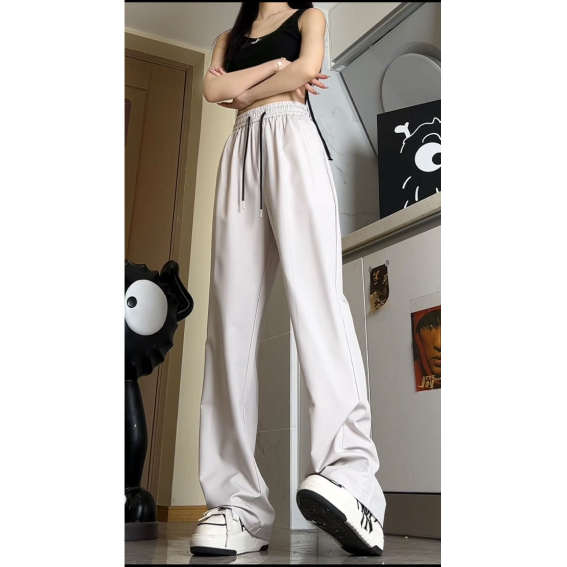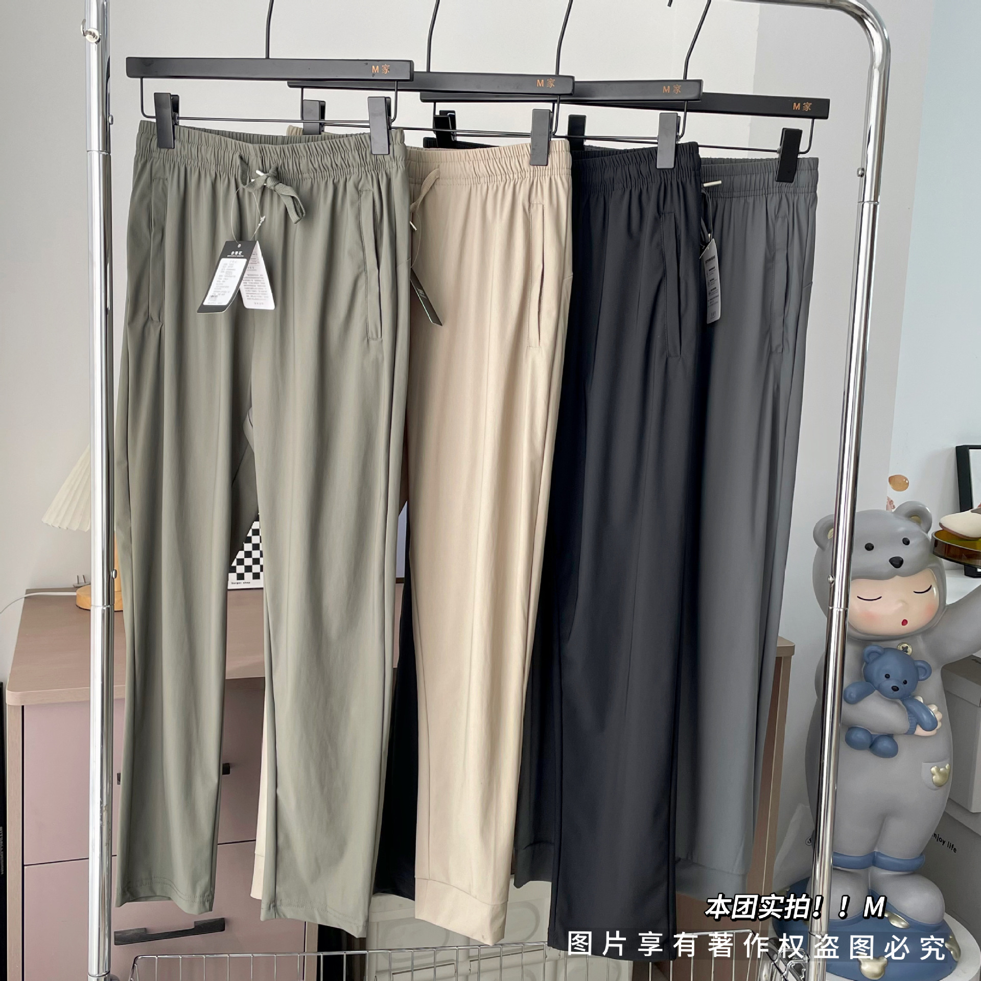 氷糸ズボン2024夏の垂感が薄くてカジュアルで、腰がゆったりしています。