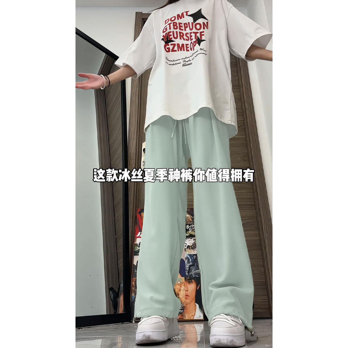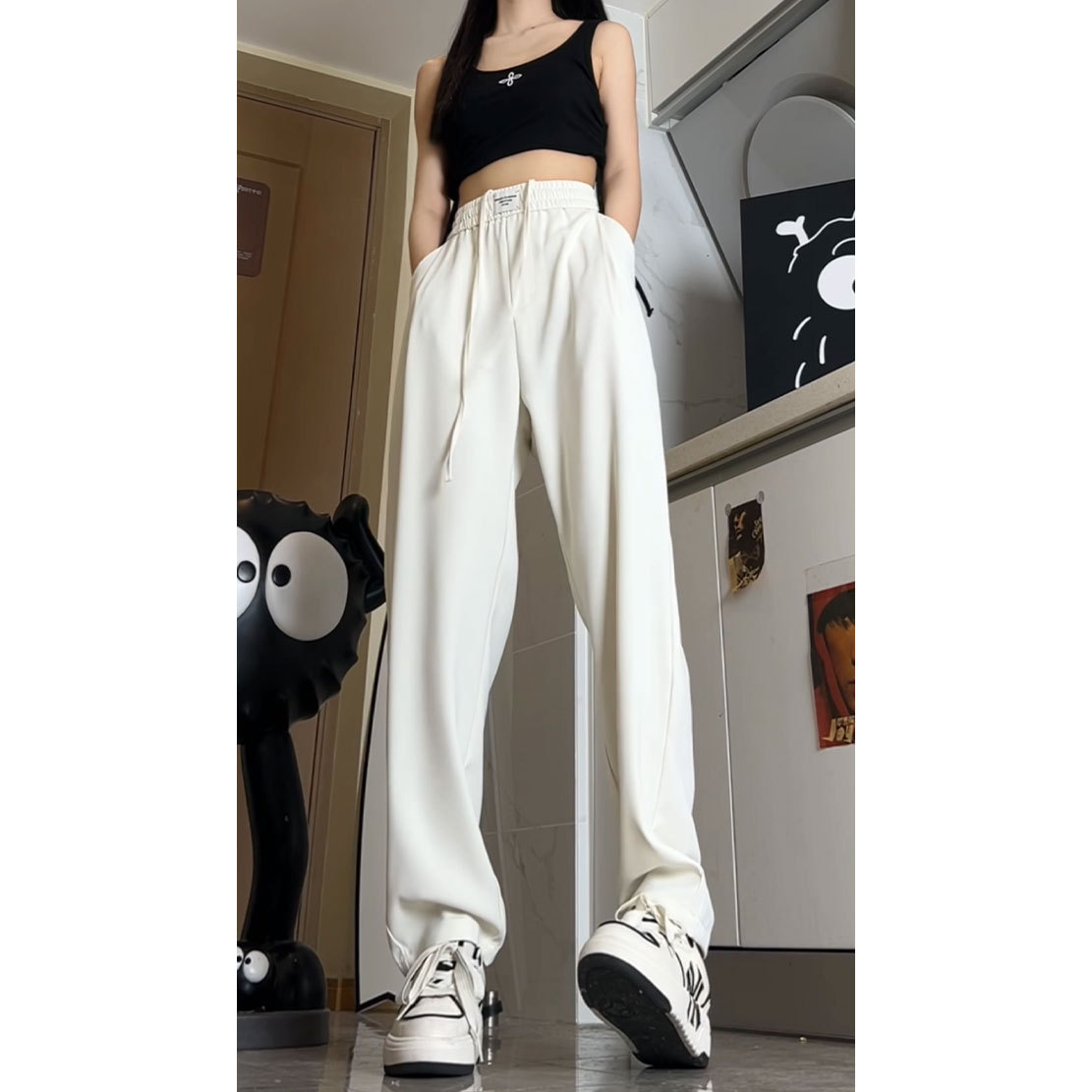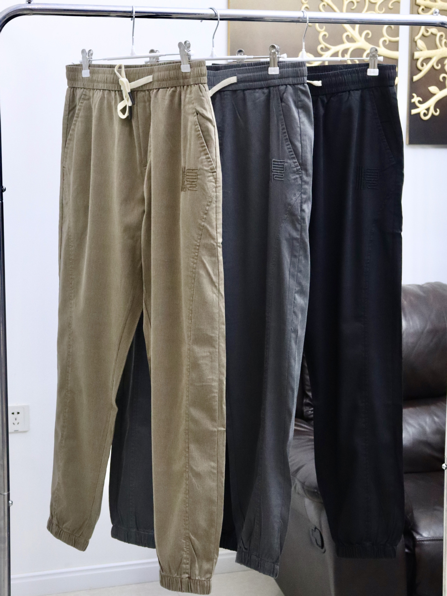 氷糸ズボン2024夏の垂感が薄くてカジュアルで、腰がゆったりしています。