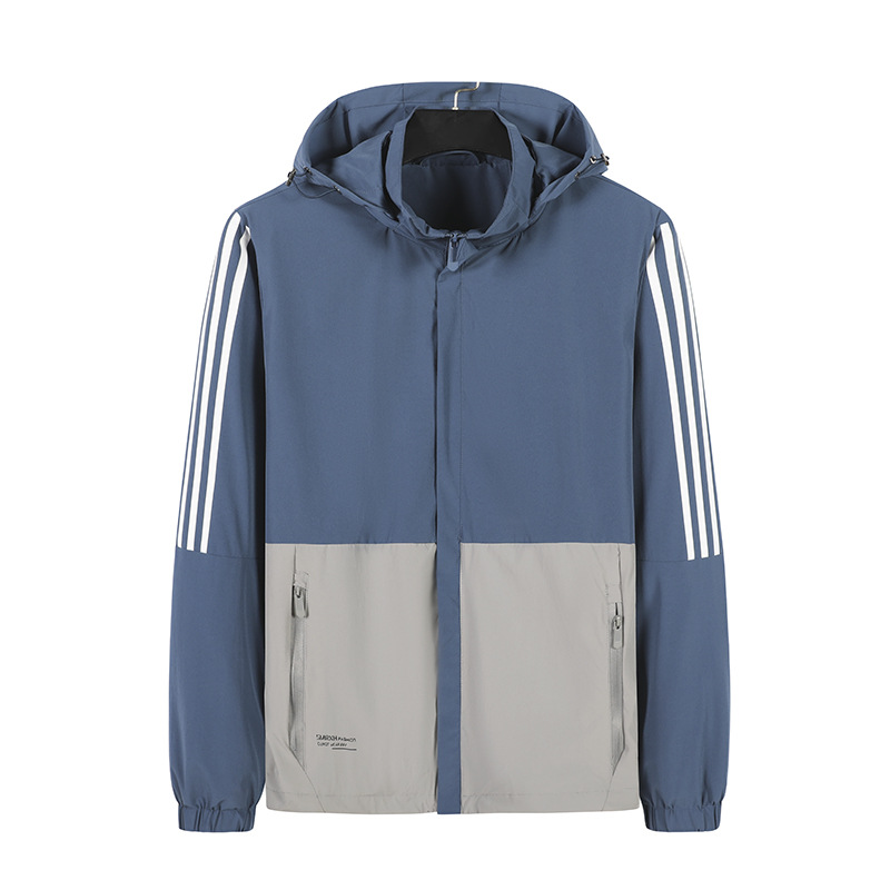 春と秋の新型ナイロンのアウトドア四面弾のメンズの薄いタイプの帽子と三条のバーのジャケットのコートのカジュアルなウインドブレーカーの青年