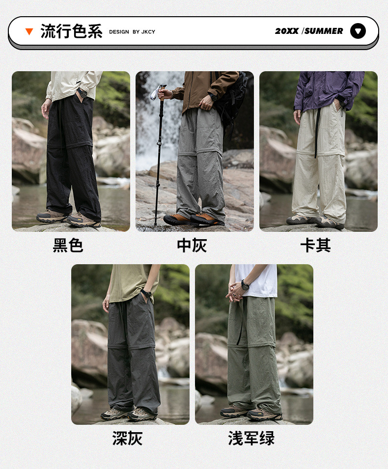 【240614001】夏の薄っぺらで通気性のある取り外し可能な機能傘兵ズボンカップルカジュアルパンツ