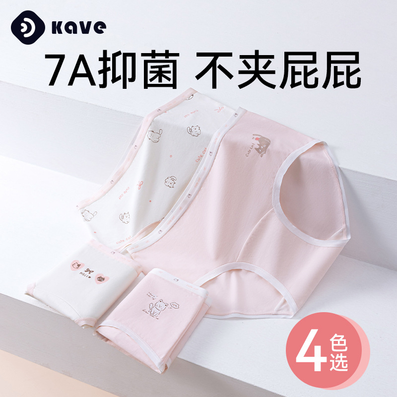 女性用純綿7A級抗菌高弾性ロングクロッチキュートな女の子用三角パンツシームレスミッドウエスト成長期用下着