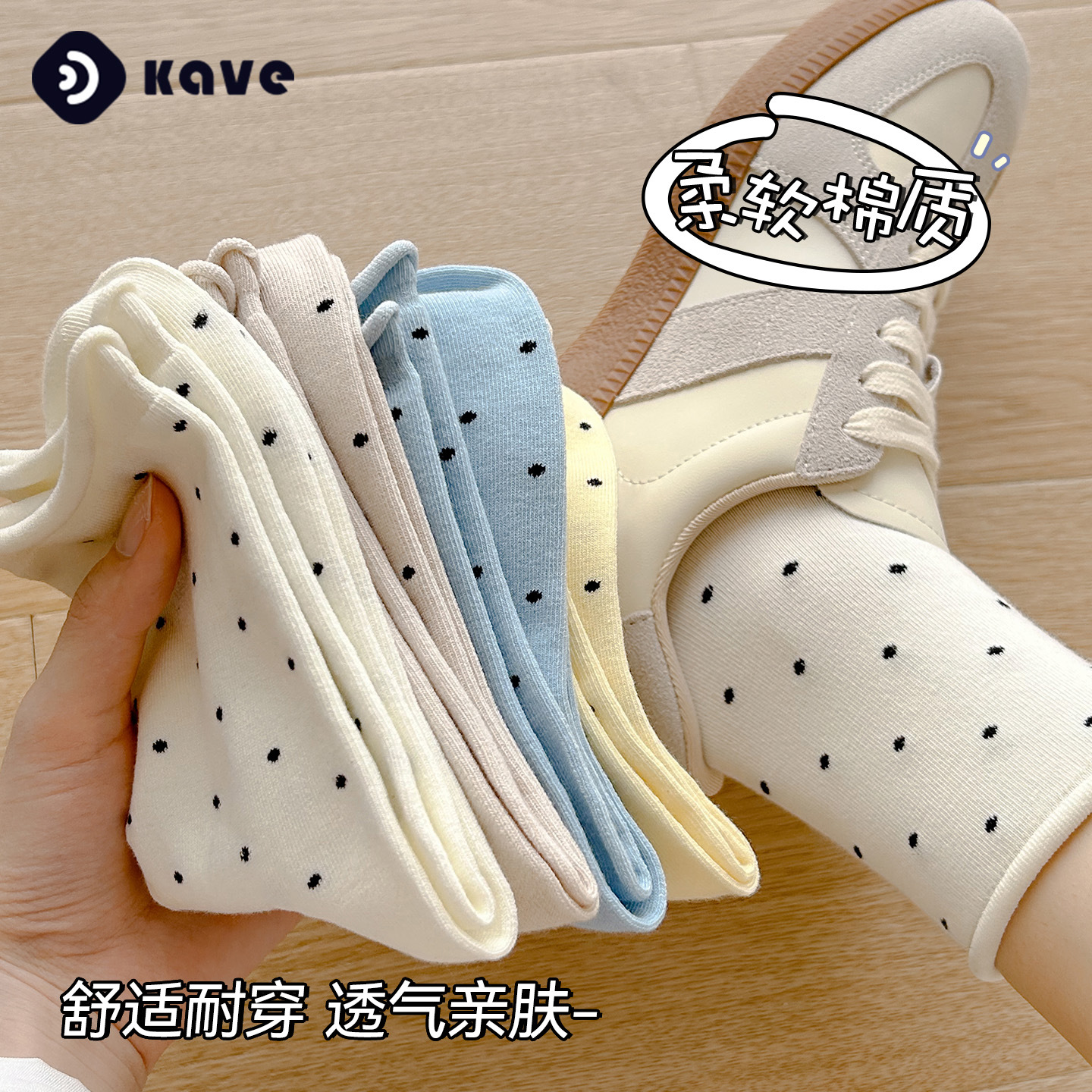 韓国風カールパイルソックス レディース 小ドット 春夏 吸汗クリーム系 かわいいドットミッドカーフソックス 産後ソックス