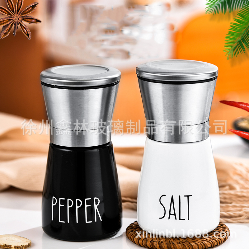 アマゾンガラス調味料瓶セットカスタム研磨器ステンレス手動家庭用サンショウ粉砕器蓋付き