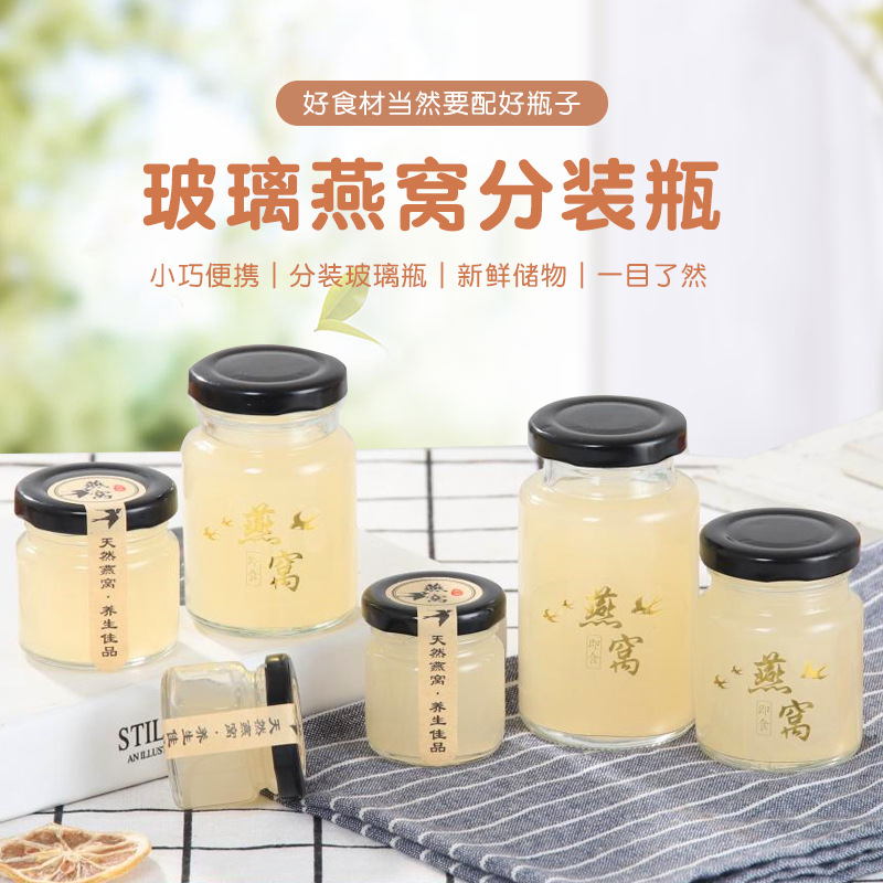 インスタント新鮮なシチューのツバメの巣の瓶は高温の分注の瓶の家庭用の75mlの蜂蜜の花のゴムのジャムのツバメの巣のガラス瓶を煮込むことができます。
