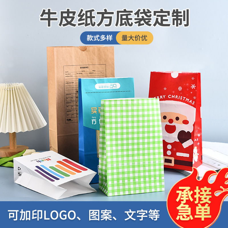 漫画スクエア紙袋使い捨て食品テイクアウトバッグ印刷ロゴギフト包装クラフト紙手提げ袋
