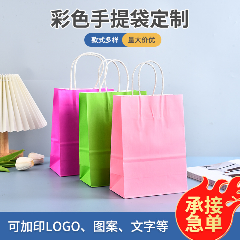カラークラフト紙手提げ袋カスタム販売包装手提げ紙袋多色印刷可能ロゴギフト紙袋