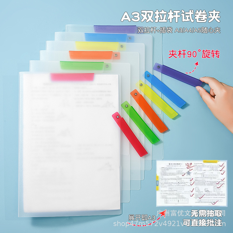 A4ダブルレバー答案収納クリップ回転レバーファイル学生収納袋バインダークリップ整理書類袋