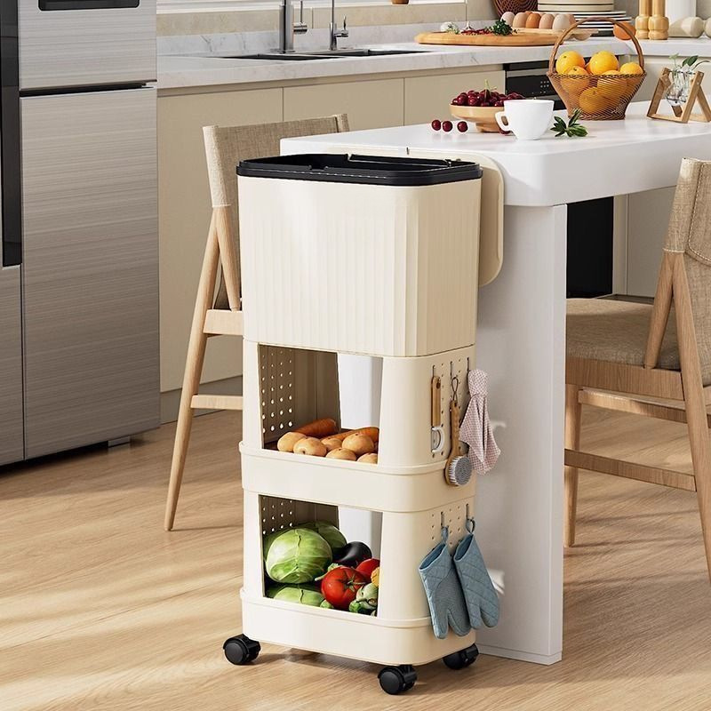 キッチンゴミ箱 曲がる家庭用 大容量 多機能 二層モバイル専用 多層収納 蓋付き収納ラック