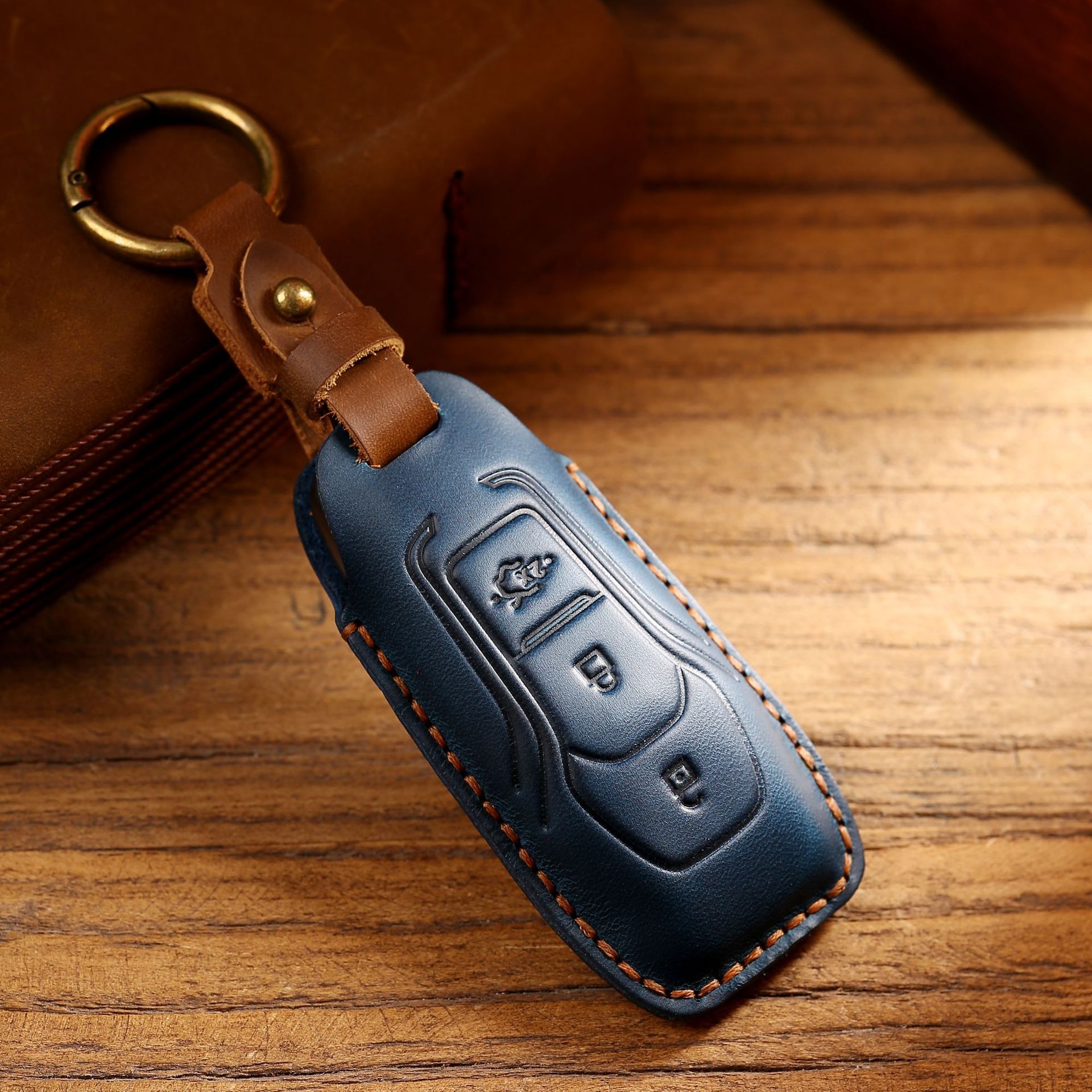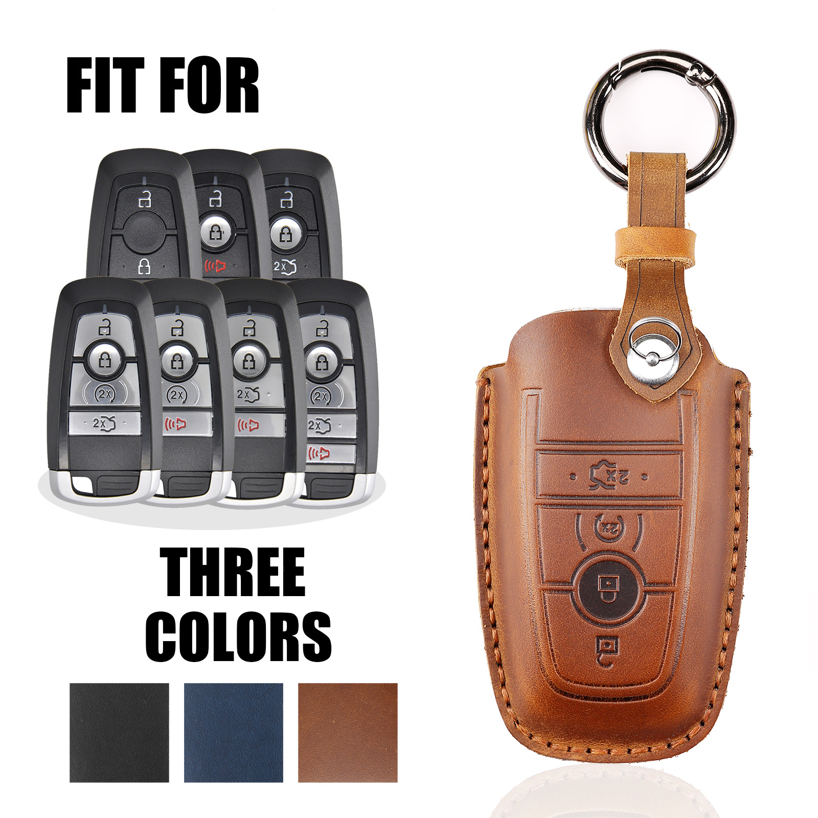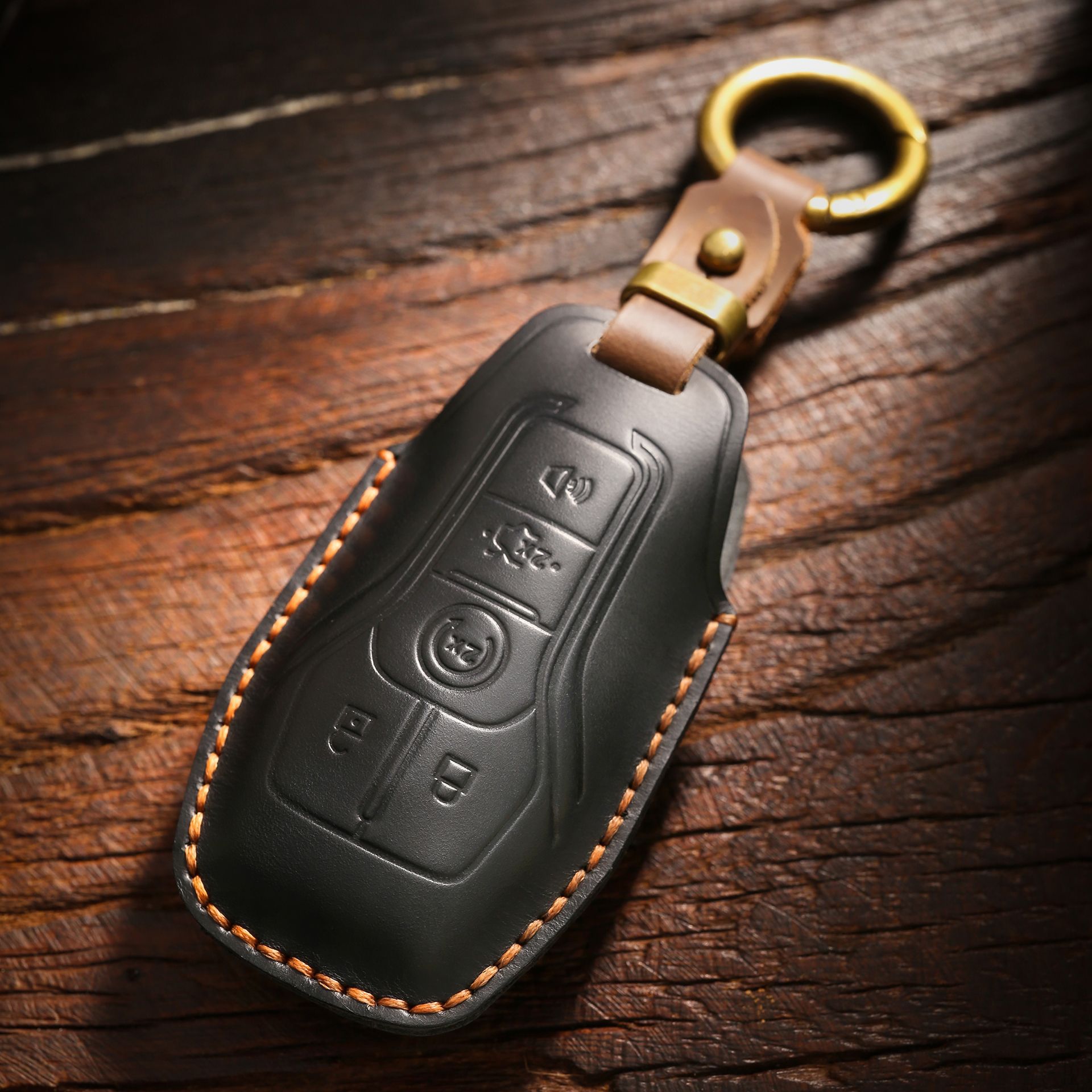 フォード車用キーケース、クレイジーホースレザー製、フルカバー、キープロテクションシェル、ワンピース、卸売対応、車のキーケース