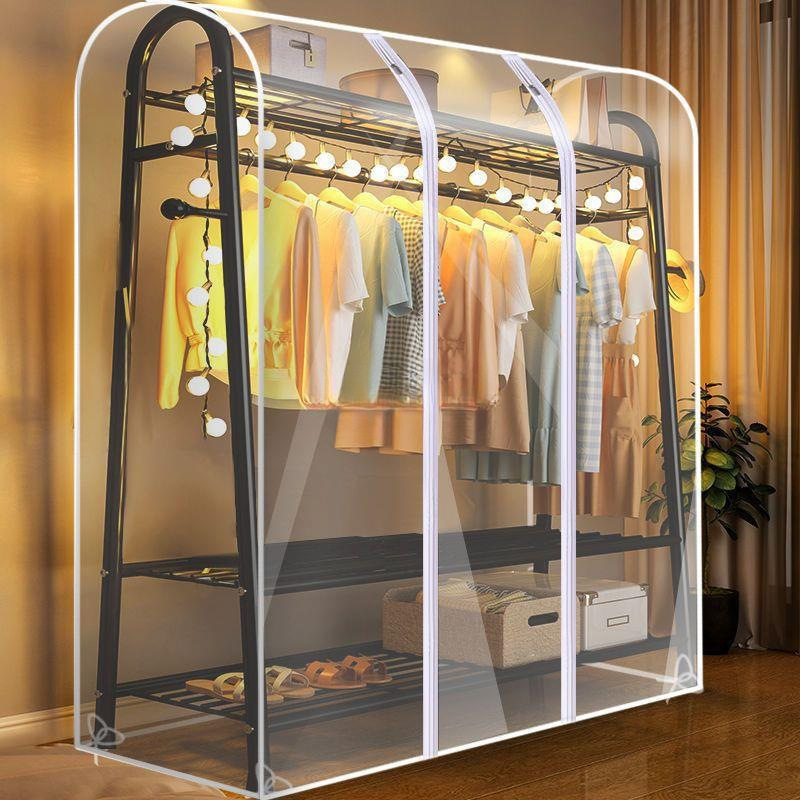 防塵布ハンガー 床置き寝室用 防塵カバー付き 衣類カバー 衣類バッグ 衣類吊り下げバッグ 透明防塵カバー