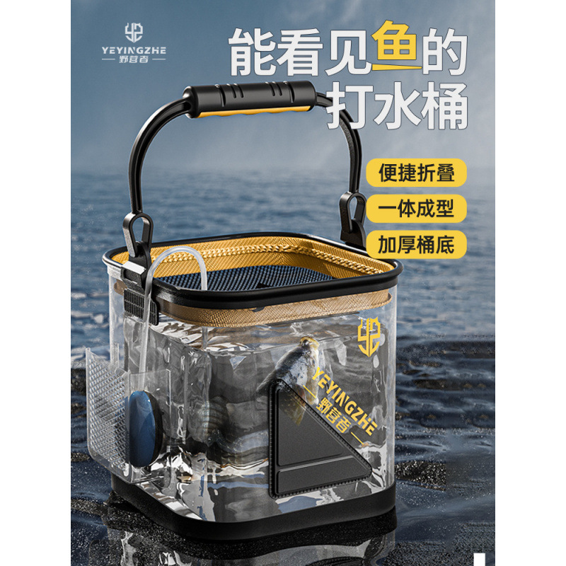 透明水バケツ、魚バケツ、魚保護バケツ、釣りバケツ、ポータブル折りたたみ魚バケツ、魚箱、ルアー活魚バケツ