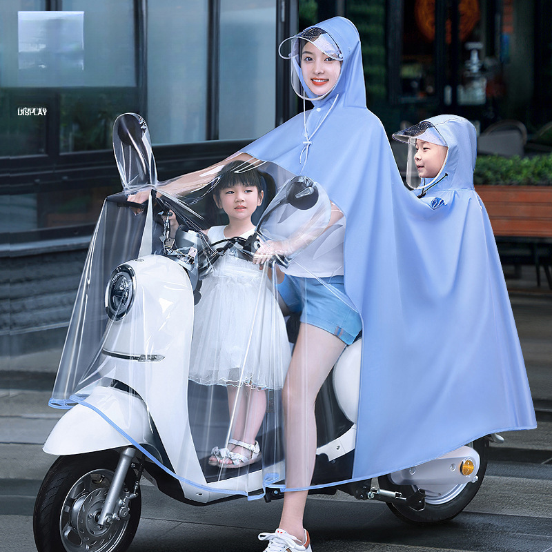 親子電気自動車レインコート、大きくて厚い、3人用母子レインコート、女性全身防雨