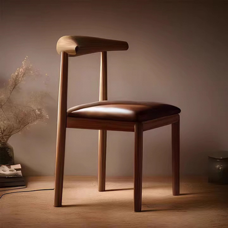 ダイニングチェアホームモダンシンプルレストランスツールファーストフードレストランチェアログスタイルレストラン背もたれ鉄ホーンチェア