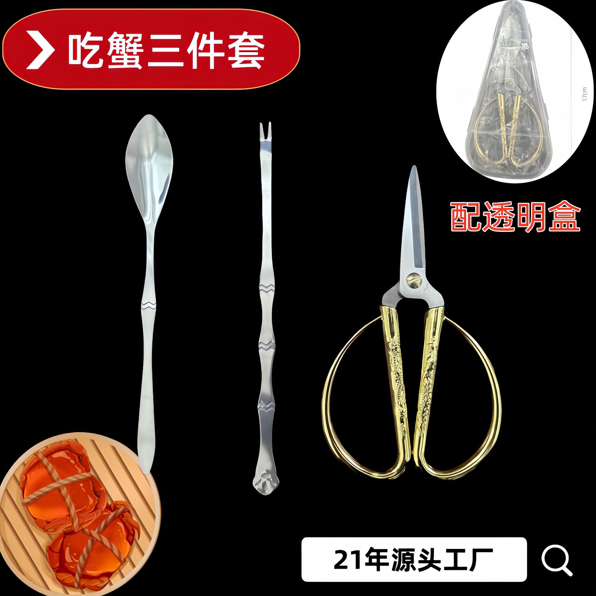 ステンレスの蟹を食べる道具の神器の3つのセットのカニのカニのスプーンのカニのフォークのカニの竜鳳はセットのメーカーを切って直接販売します。