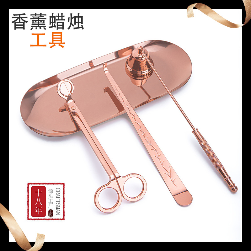 ステンレス香薫ろうそく工具4点セット卸売りキャンドルフック消滅キャンドルコアカットトレイ薔薇金金