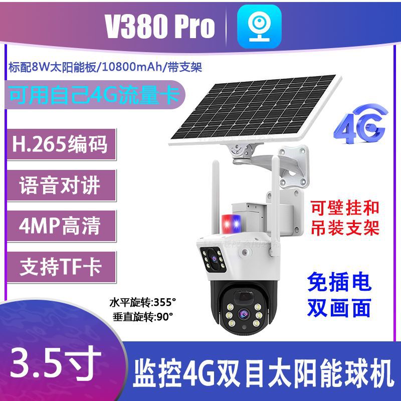 V380ソーラーダブル画面360度wifi屋外モニター家庭用4gガンボールhdフルカラーカメラ