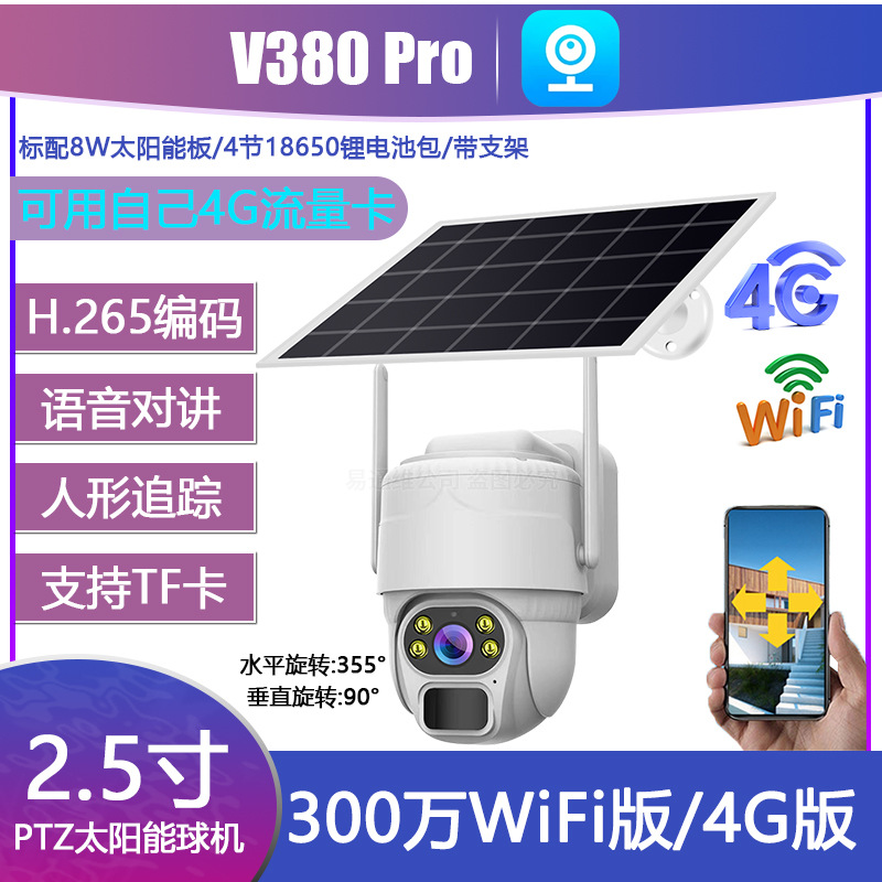 V380太陽エネルギー無線wifiモニター360度携帯電話遠隔屋外家庭4gフルカラーカメラ