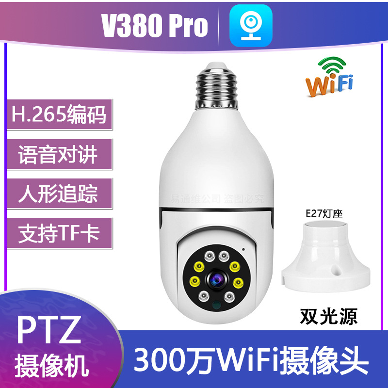 V380家庭用デュアル画面電球カメラフルカラーナイトビジョンワイヤレス360度監視ナイトビジョンカメラ