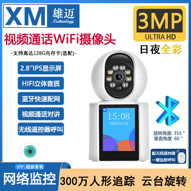 雄マイ家庭用双方向ビデオ通話ai知能監視老人子供一健コール高精細帯スクリーンカメラ