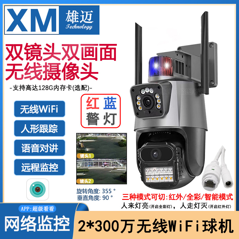 雄マイ360度wifi無線屋外監視家庭用ガンボール二画面600万hdフルカラーカメラ
