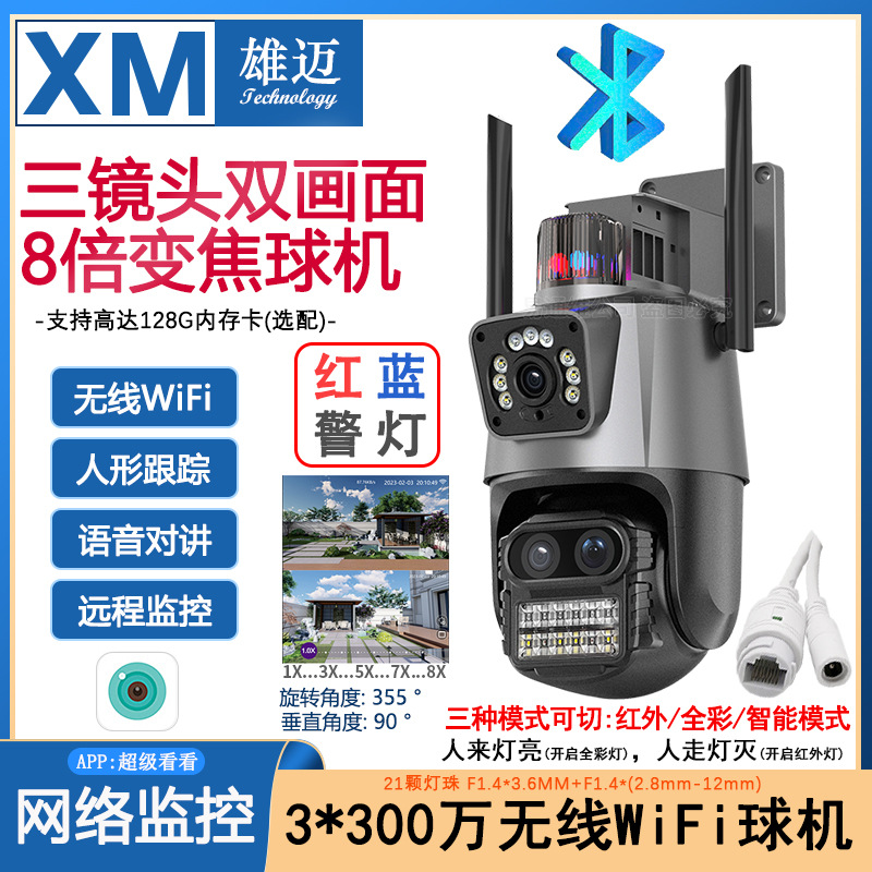雄マイ360度wifi無線屋外監視家庭用ガンボール多画面900万hdフルカラーカメラ