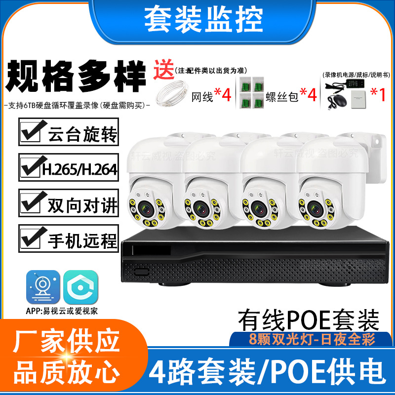 易視雲4路8路300万500万800万48v監視ipフルカラー対談poeボールセットh.265