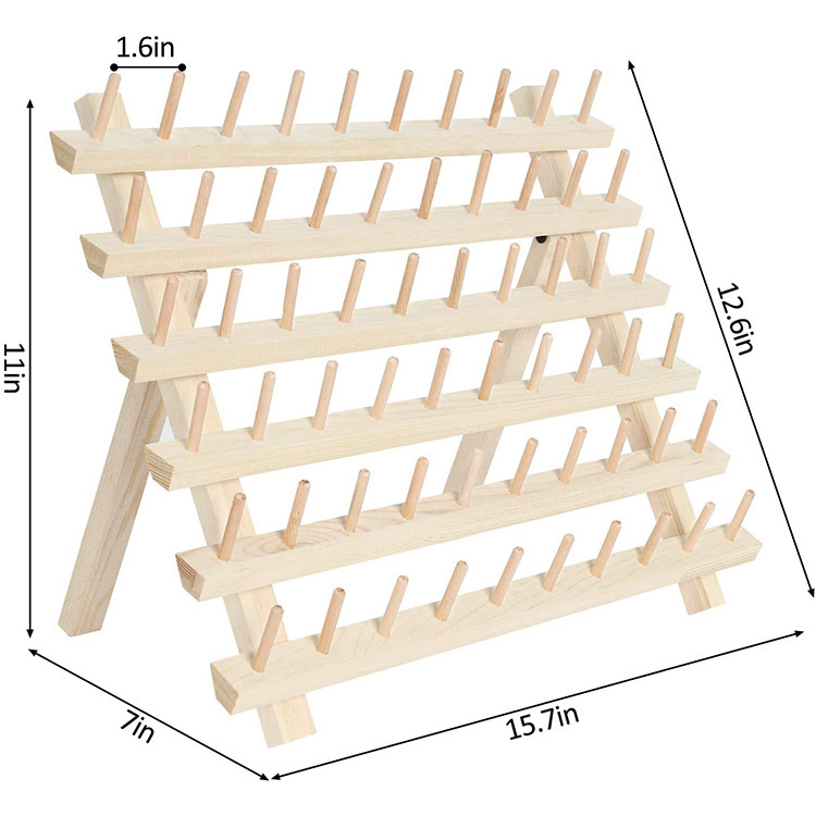 60軸木製ワイヤーラックミシン収納棚宝塔毛糸棚物置棚木製デスクトップ折りたたみボビンラック