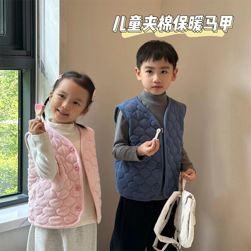 2024秋冬子供にベルベットをつけて保温ベストを厚くした男の子の女の子が上着を着た赤ちゃんの袖のない肩の馬
