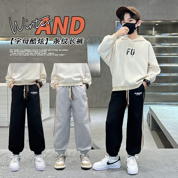 H2024秋冬子供ファッションファッションファッションのサイドバーのスポーツレジャーズボンの中の大きい男女の子供のアルファベットの足の衛