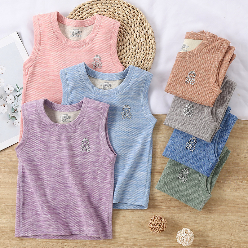 H子供保温ベスト秋冬女の子男の子新作ウールシルク丸襟上着赤ちゃんボトムカン
