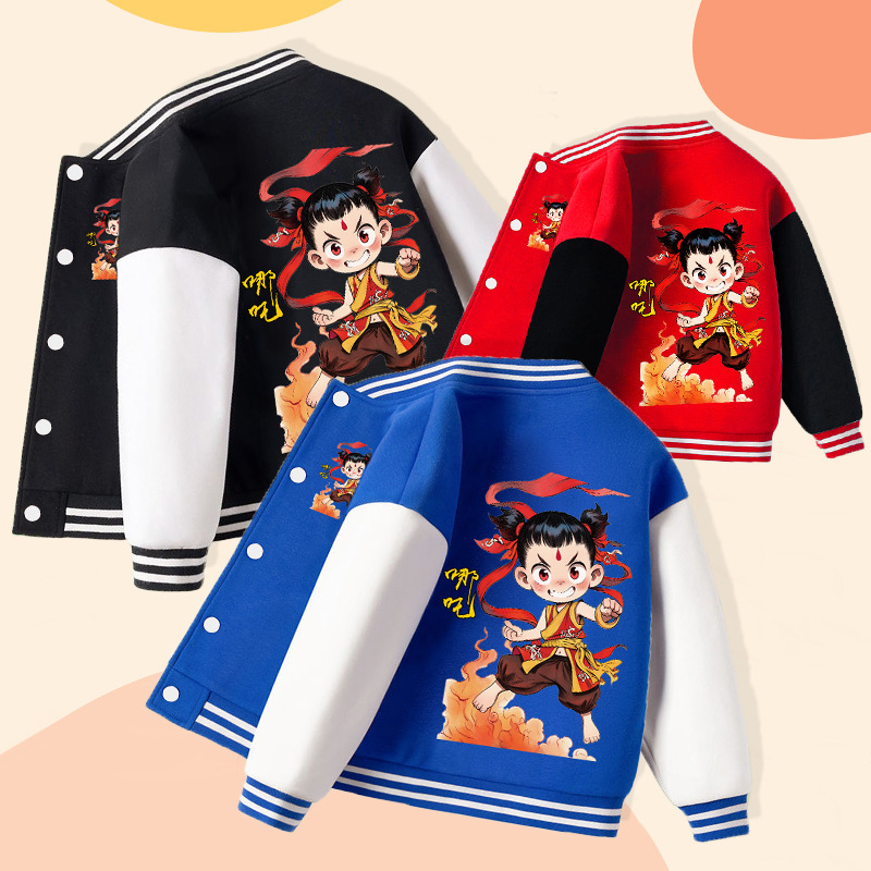 2025 春子供のかわいい漫画野球ユニフォーム小中型子供用スプライススリーブルーズボタンカーディガンジャケットトップ