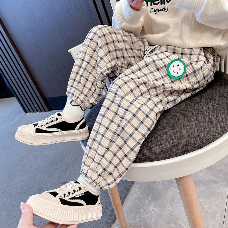 2023秋冬子供ファッションファッションファッション格子ゆるいカジュアルパンツ男女子供かわいいアニメ外着足ズボン