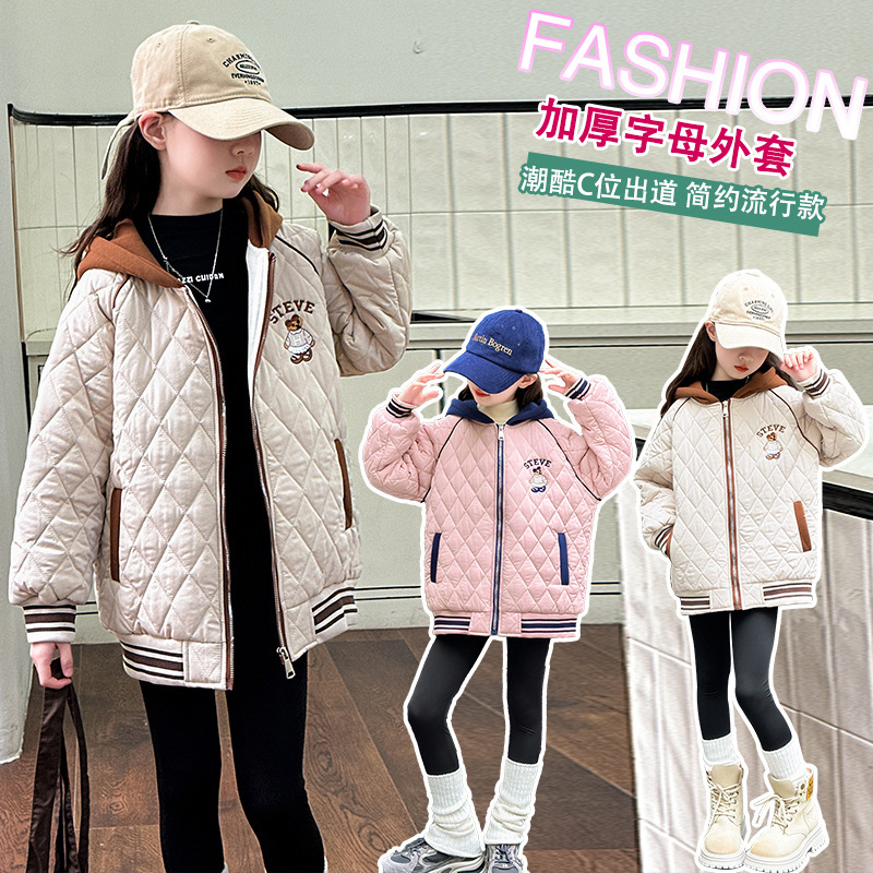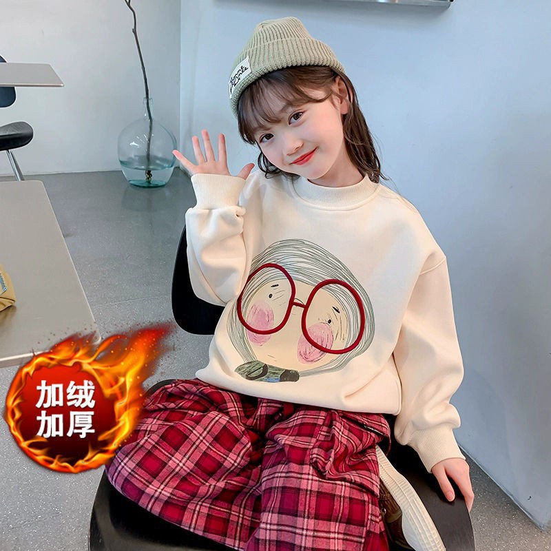 2024秋冬子供のかわいいゆったりとしたカジュアルなプルオーバーの女の子とベルベットの保温中襟長袖上着