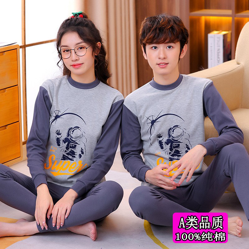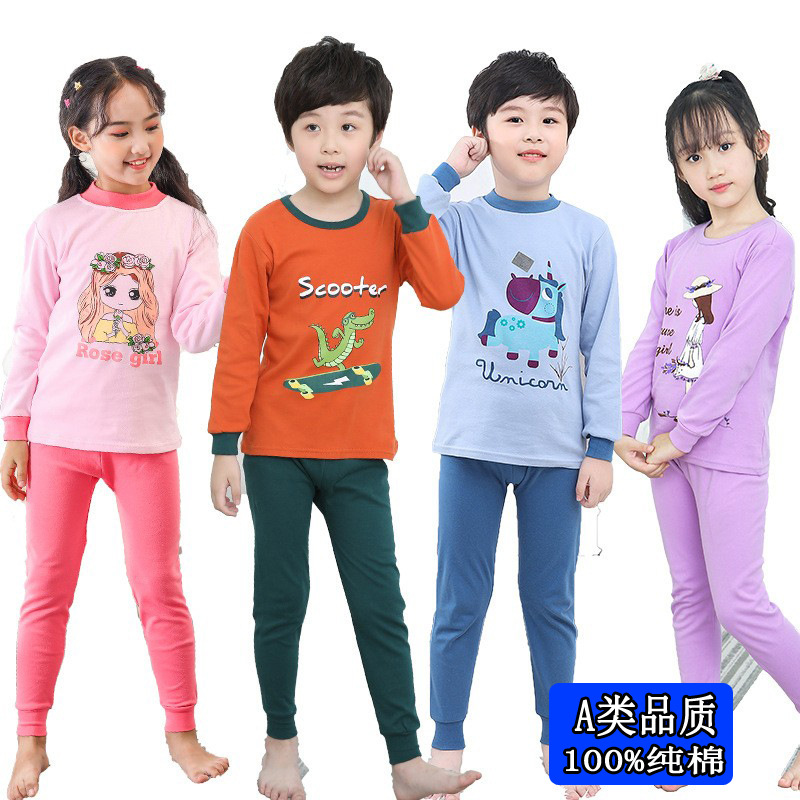 子供青少年純綿中襟秋衣秋ズボン下着セット秋冬男女の子保温パジャマ綿セーター