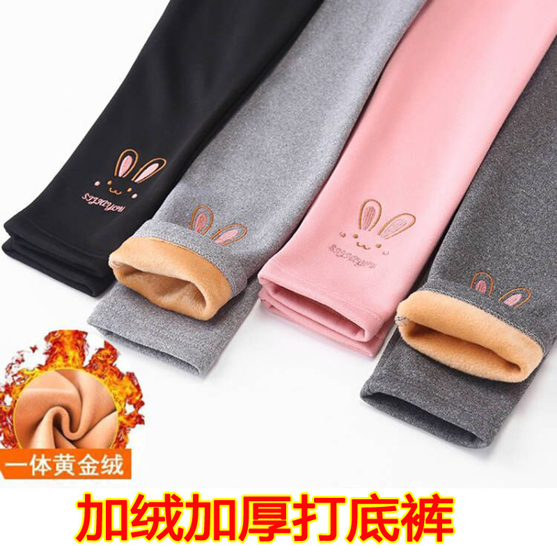 子供のベルベットは保温パンツを厚くして、女の子の秋冬スタイルの子供の女の子の外に一体のベルベットのズボンを着て代行します