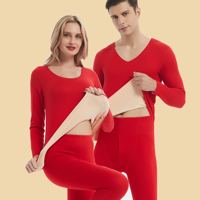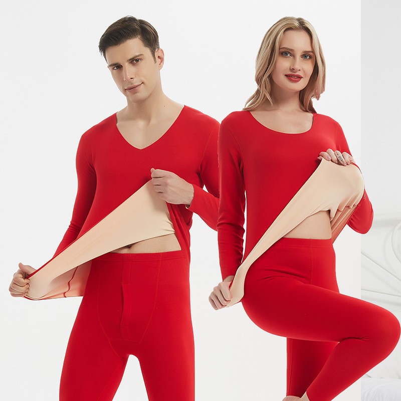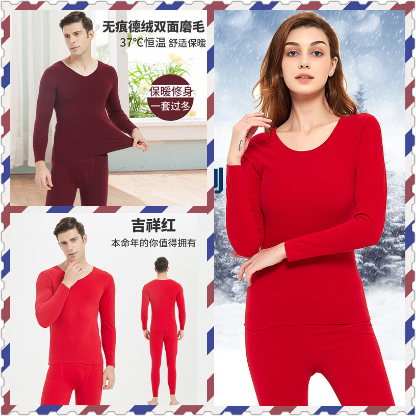 Y本命年大紅カップル保温下着セット男女徳ab両面パイル無痕ベルベット秋衣秋ズボン