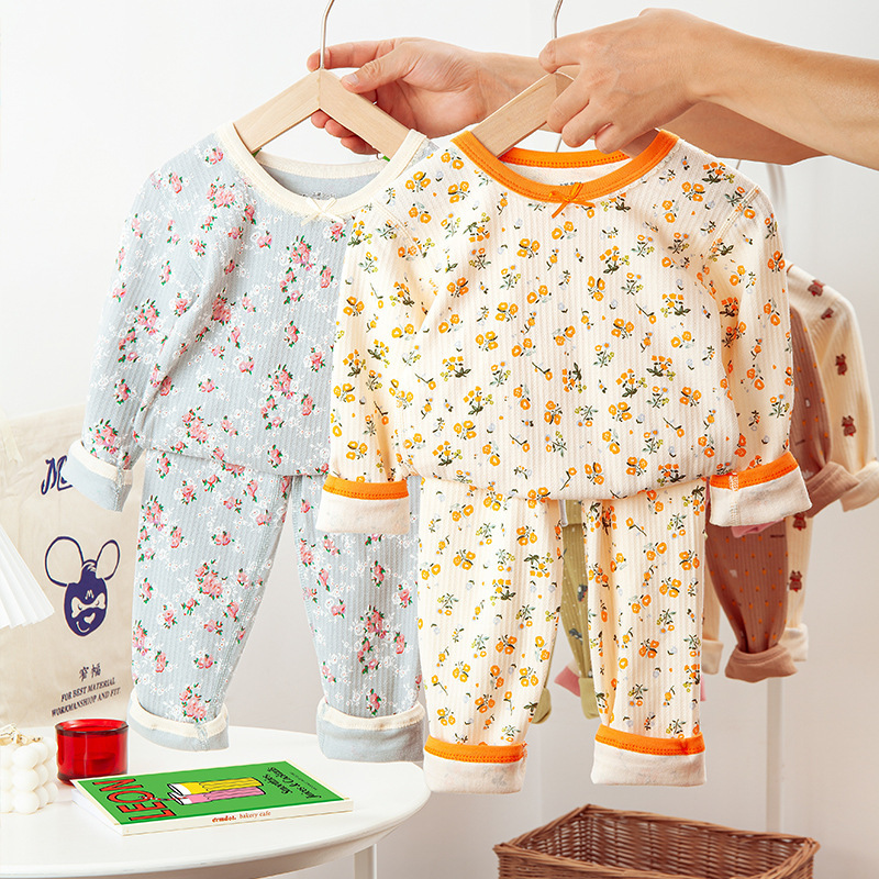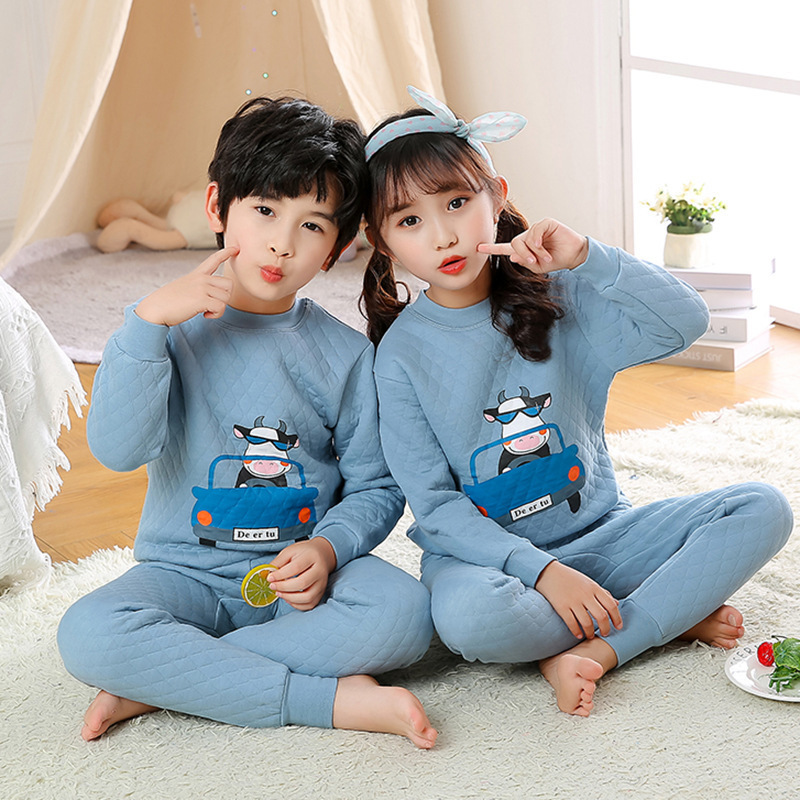 Y三層厚綿入り中空綿秋衣秋ズボン秋冬家庭服女子男子児童保温下着セット