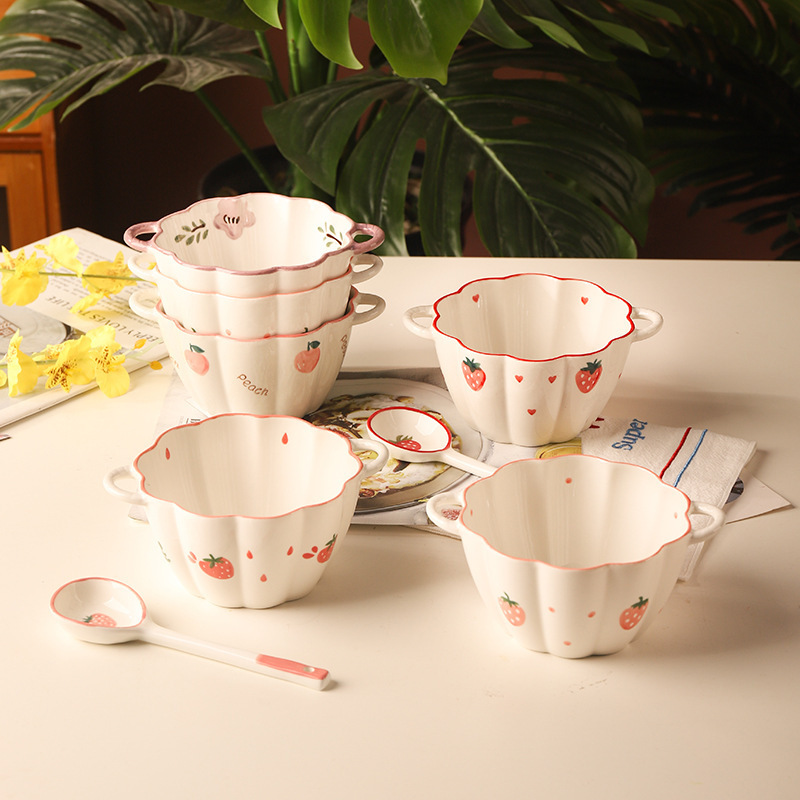 フルーツサラダボウル高颜値家庭用蒸し卵耳付きボウルセラミック焙煎ボウル空気フライヤーボウルhcds
