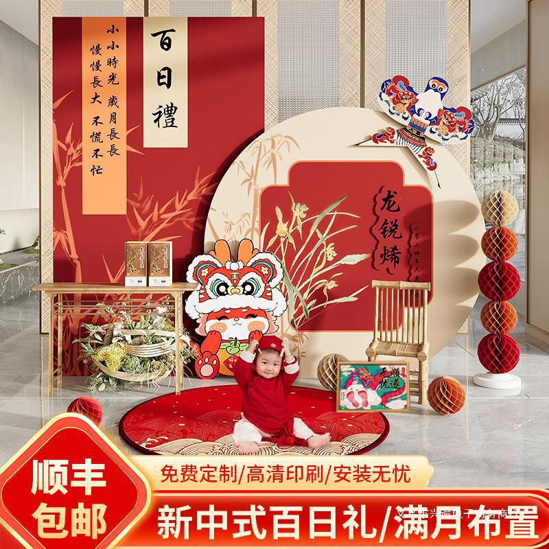 竜の赤ちゃんの百日の宴会の30満月の酒の配置は新しい中国式のシーンの儀式感の背景の壁のkt板の赤ちゃんを飾ります。