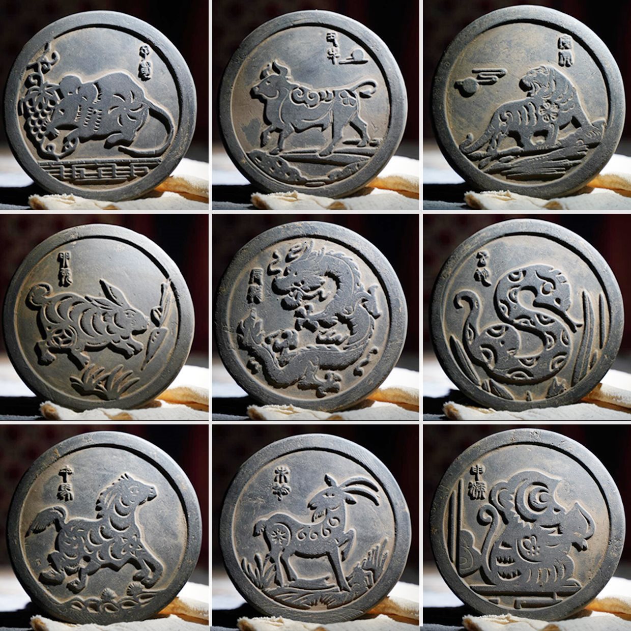 龍年十二生肖模造古建築瓦当秦漢煉瓦拓印伝片研学工具テンプレート書斎置物