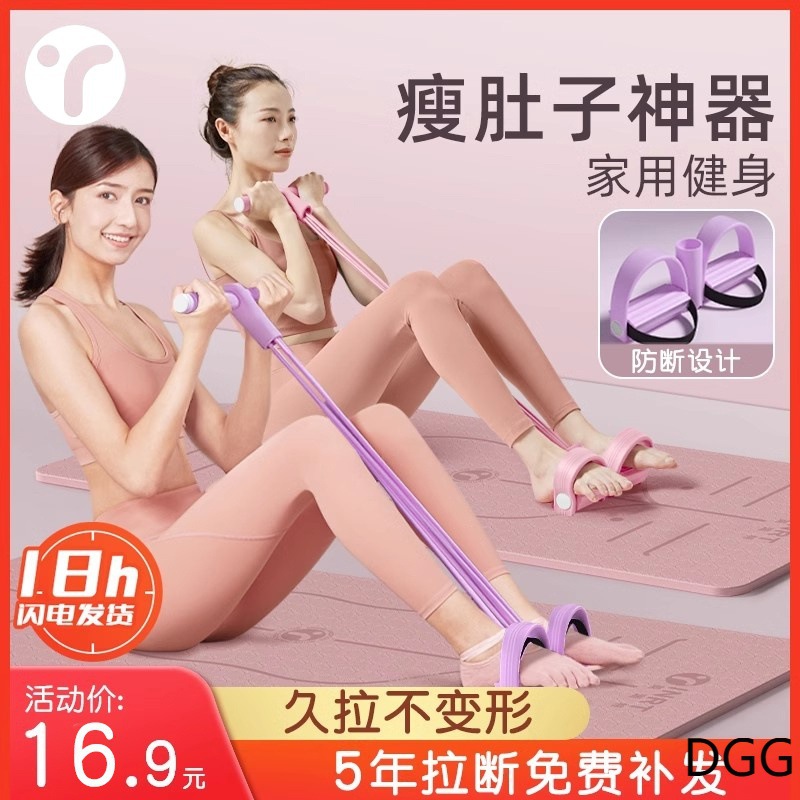 足で力を引く器のやせた腹の神器の家庭用フィットネスの女性の多機能は仰向けになります。
