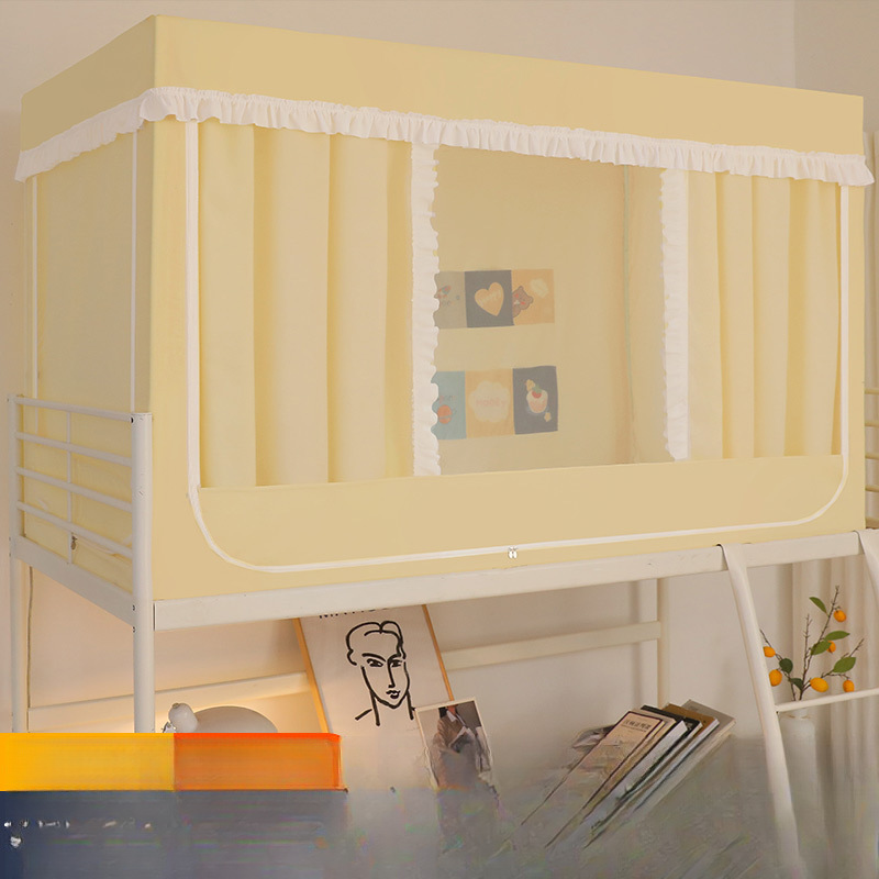 大学生寮は蚊帳付きの上に全包一体式のベッドカーテンを敷いています。