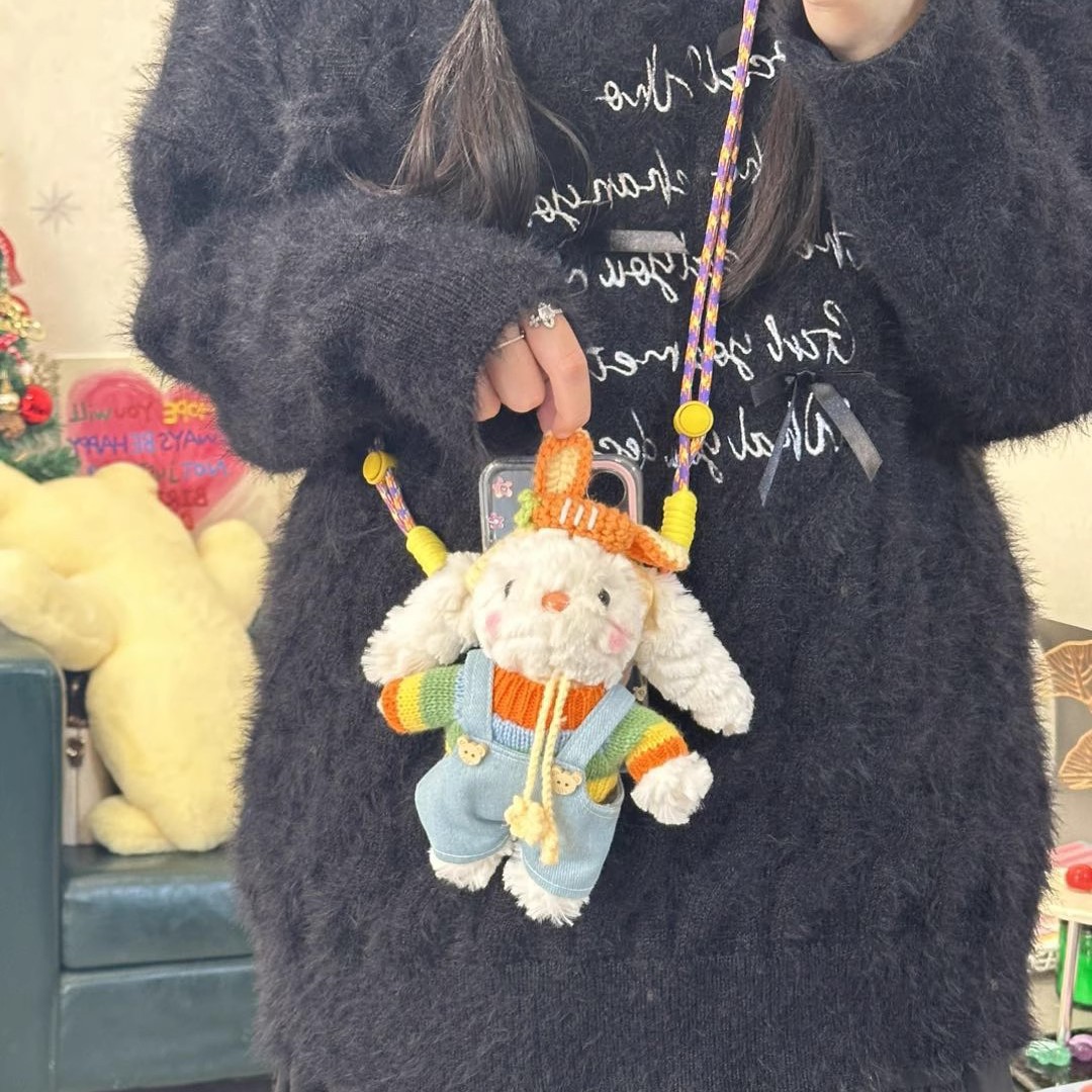 【完成品ペンダント】レインボーニンジンオーバーオール垂れ耳ウサギバッグペンダント漫画かわいいぬいぐるみ