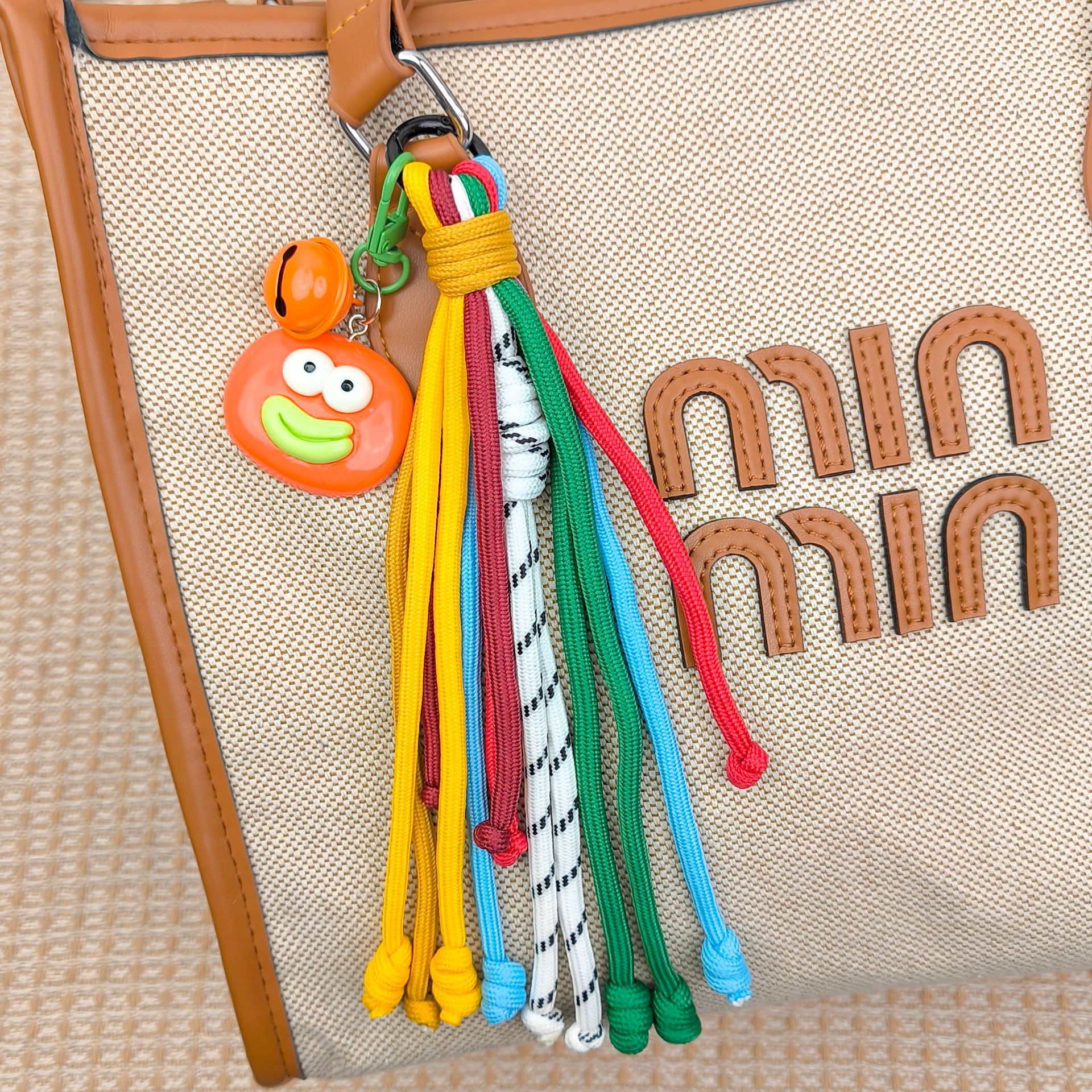 韓国iu系バッグストラップカラードーパミン結び編みひもボヘミアン風車キーホルダーストラップ